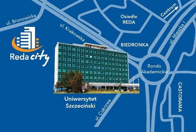 REDA CITY położona jest w pobliżu centrum handlowego usługowego Atrium Molo i centrum wyposażenia wnętrz IKEA, a wyjazd z miasta na autostradę zajmuje tylko chwilę. O krok od nas możecie Państwo skorzystać z wielu tras rowerowych prowadzących do rozlewisk Odry – Dziewoklicza stanowiących znakomite miejsce na aktywny wypoczynek.