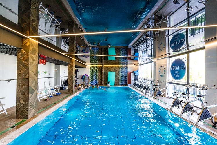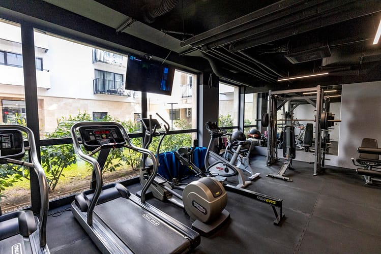 Z uwagi na to dużą część powierzchni usługowej na paterze przeznaczyliśmy na miejsca związane z aktywnością fizyczną. W budynku etapu I, na parterze powstał nowoczesny basen oraz siłownia.